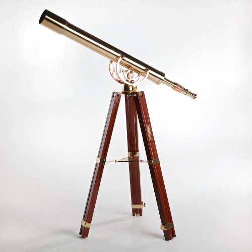 The Zhumell Commodore Brass Telescope not only offers amazing views of the heavens, but it makes a stylish accent piece for any office, den, or living room as well. This nautical-style refractor telescope features a brass body, a copper-arc altazimuth mount and focuser, and a rich and durable mahogany tripod. With crystalline optical clarity, 40x magnification, and 1000mm focal length, this stately scope is ideal for both stargazing and long-distance terrestrial viewing. The Zhumell Commodore Brass telescope is sure to make a classic, elegant statement anywhere it's placed.