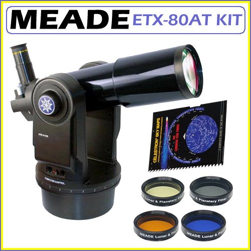 Meade ETX-80 AT-TC-BB Astro Telescope Kit with Celestron Sky Map Star Chart Book + Meade Lunar & Planetary Color 4 Filter SetMeade ETX-80 AT-TC-BB Astro Telescope Kit with Celestron Sky Map Star Chart Book + Meade Lunar & Planetary Color 4 Filter Set Detail : KIT INCLUDES:* MEADE ETX-80 AT-TC-BB TELESCOPE KIT.* MEADE COLOR FILTER SET.* CELESTRON SKY MAP STAR CHART BOOK.